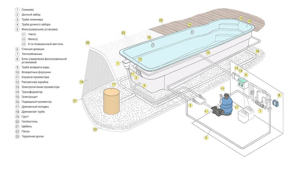 Принципиальная схема размещения стандартного оборудования для бассейна